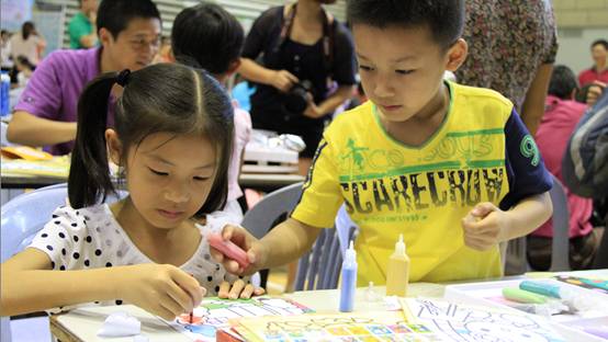 在特色活动方面,继前年的现场手工操作、去年的绘制文化衫之后,今年是DIY儿童沙画。通过自己动手操作,培养小朋友的艺术创作与欣赏的兴趣,丰富小朋友的艺术想象力。小朋友在家长的指导下撒着五颜六色的彩沙,充满童趣的作品中洋溢着快乐和幸福。