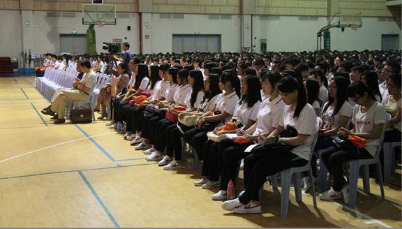 接着,优秀班主任代表曹利老师进行发言。曹利老师介绍了自己当班主任的经验,并对2013级新生提出了殷切的希望。曹利老师语重心长和充满关怀的发言博得了新生热烈的掌声。
