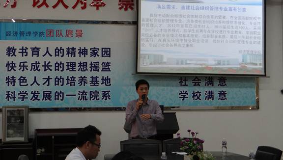 李允冠副秘书长以开阔的视野和深刻的洞察力,与老师和同学们分享了经济社会发展中的前沿问题,介绍了顺德社会组织和社工机构的发展状况,指出了深入推进社会工作改革对经济社会发展的重要意义。叶楚君总干事从社工专业在国际、国内的发展形势,结合顺德本地发展社工专业的优势,给与会师生介绍了社工和社会组织管理专业的光明前景。陈淑仪副总干事为大家剖析了创新的深刻内涵,并结合自身的工作经历,鼓励同学们利用专业平台,努力学习,不断提高自身素质,为将来就业打下坚实的基础。