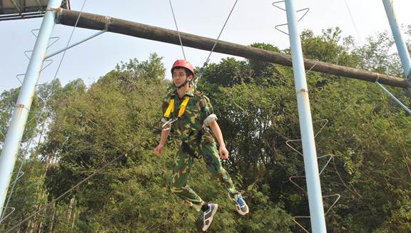 此次拓展训练由“挑战150”、“跳出真我”、“高空断桥”、“捉泥鳅”、“进化论”、“成功之路”5个项目组成。特别是最后一项的“成功之路”更是将训练推向了高潮,每两位同学用手组成桥墩,要求每位同学都要在这段人桥中安全过桥,抵达终点,这是一段震憾心灵的历程,也是对同学们心灵的磨练。同学们团结合作,全力以赴,每双手臂由于都承载着通往成功之路的伙伴的力量,出现了红肿和淤痕,但却使同学们的心灵得到了升华,重新认识和体验了团队精神的力量,也激发了个人的潜能,增强了挑战自我的勇气和信心,使自己对追求人生之路有了新的想法和收获。
