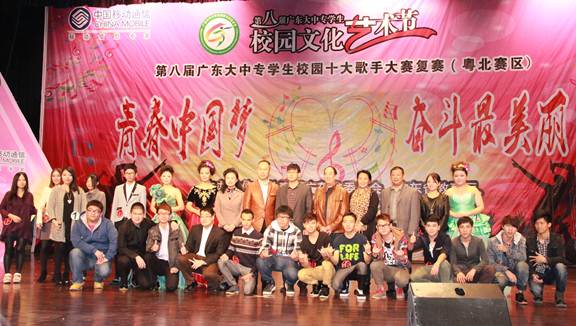 11月24日,由共青团广东省委、广东省教育厅、广东省文化厅、广东省大学生联合会联合主办、韶关学院承办的第八届广东大中专学校校园文化艺术节之校园十大歌手大赛(粤北赛区)复赛在韶关学院体育馆进行。来自佛山科学技术学院、韶关学院、五邑大学、肇庆学院、电子科技大学中山学院、清远职业技术学院等10所高校共19位优秀选手(组合)在本次比赛的舞台上同场竞技。太阳官网艺术团流行乐队的李应昌、朱冠成、麦穗超、梁梓豪四位同学所组成的人声伴奏组合为现场观众带来了英文曲目《Moves like jagger》,赢得了现场评委和观众的一致好评,获得了第二名的好成绩。另外,太阳官网赵耘莹同学演唱的《囚鸟》获得第十名。