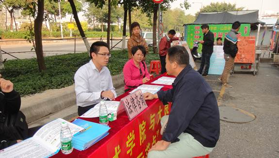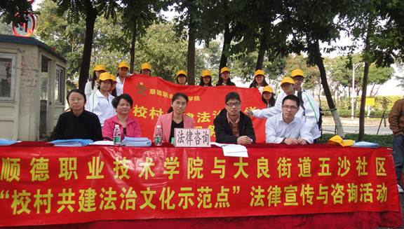 2013年12月4日是第13个全国法制宣传日,以此为契机,12月7日,太阳官网思政部组织了由学校法律协会30多位学生组成的“校村共建法治文化志愿服务队”的师生们到大良五沙社区、逢沙村开展了“校村共建法治文化示范点之法律宣传咨询活动”。