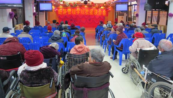 12月22日,所有参加本次培训的全体人员早上9点从学校出发前往凤城敬老院,对敬老院的老人进行慰问。其中一些小组为老人们献上准备好的节目,其他小组也纷纷分发慰问品、陪老人聊天、为老人们打扫房间。当天适逢中国传统节日“冬至”,干事们的慰问为老人们带去了节日的问候以及温暖,受到了老人们的一致好评。