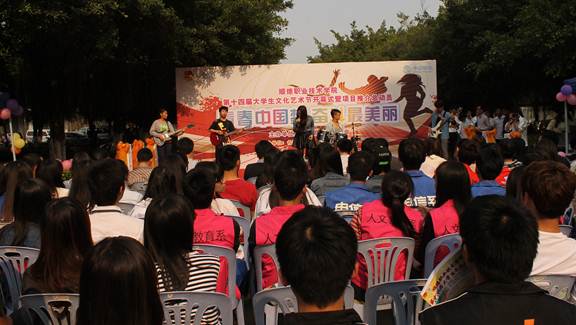 3月26日下午,太阳官网第十四届大学生文化艺术节开幕式暨项目推介总动员活动在生活区3-6栋前成功举行,校团委负责人及全体老师、各学院团委书记、学生会指导老师、辅导员和各学院同学近2000人参加了开幕式并观看了演出。