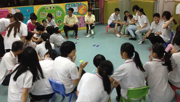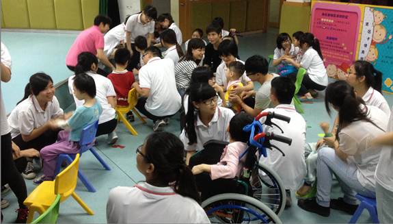 走进威权康复服务中心,志愿者们首先与中心内的社工召开了一个短暂的交流会。通过社工的讲解,志愿者们了解到了孩子们当前的生活和身体情况,同时也对威权康复服务中心现在的发展状况有了大体的认识。会后,志愿者们为康复中心里的孩子们送上了丰富多彩的节目,在表演当中还积极与他们进行游戏互动。志愿者们的热情赢得了孩子们欢笑和掌声。表演结束后,志愿者们还帮助康复中心打扫卫生,并表示希望以后能有更多机会与孩子们一起互动交流。