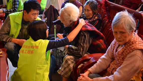 机电工程学院一直以来十分重视关爱特殊群体的志愿服务,每个学期都会利用节假日组织学生志愿者们到附近的敬老院、孤儿院等机构进行志愿活动。