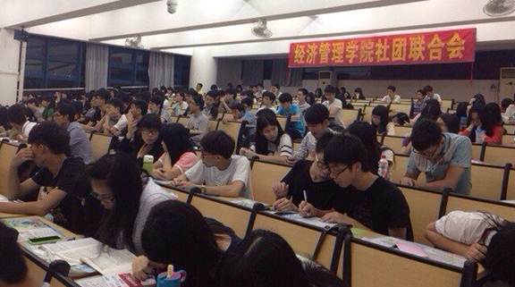 5月12日,经济管理学院社团联合会在教学楼8栋300举办“读大学,究竟读什么”经验交流会。经济管理学院近300名师生参加了本次活动。