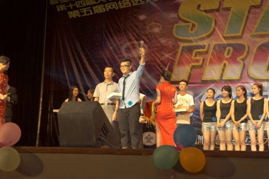 整场比赛以“放飞梦想,青春起航-Star form here”为主题,将8组参赛者的演唱、舞蹈、艺演等不同形式的表演编排起来形成一个舞台剧故事。整台舞台剧以一群大学生追逐青春梦想为主线,讲述了青年学子毕业后为了自己的梦想而奋斗的曲折历程。将青年学子积极向上,敢于拼搏,勇于创新的精神融入整台晚会。选手们的精彩演绎,使得晚会2个小时内的即时微信多达6300余条,创晚会互动历史最高。最终,经管学院何自恒同学凭借一首动人的《人来人往》获一等奖;电信学院李应昌、往届毕业生陈协英组合的《趁早》和校街舞队的《enjoy my hiphop life》获二等奖。