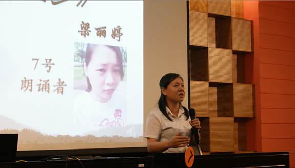 比赛在轻快悠扬的葫芦丝演奏中拉开序幕。1号选手张放同学所朗诵的代表作品《黄河》,一开始就以慷慨激昂的感情基调震撼全场。其他同学的朗诵作品,包括《天上的草原》、《祖国啊、我亲爱的祖国》、《相信未来》、《少年中国说》、《中国梦》等。朗诵过程中,选手们或低沉迂回、或深情款曲、或激越飞扬、或无限憧憬,其展露的情感和表现的技巧,多次打动观众和评委,现场气氛热烈。