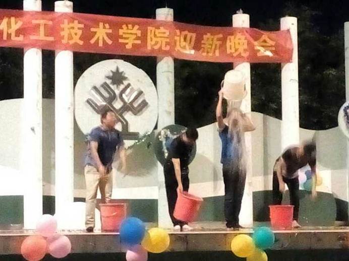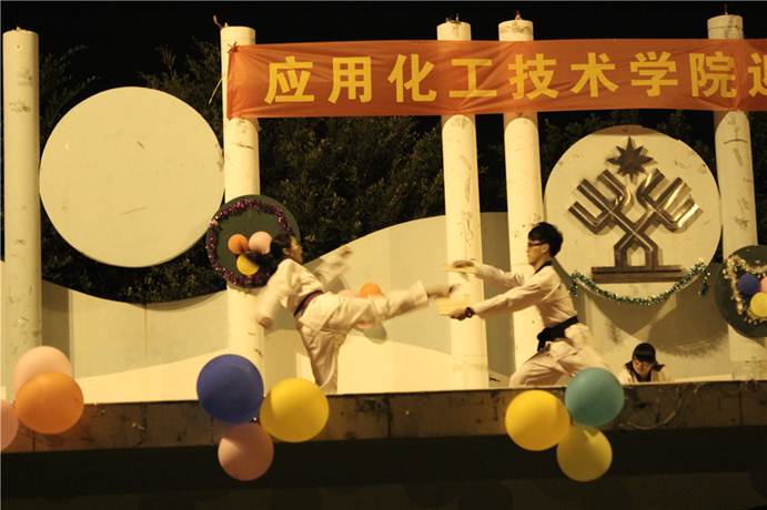随后,本次晚会在精彩的视频分享中拉开了帷幕,化工学院学生会的干部收集了2014级新生军训的相片,并制作成了精美的视频,带领在场的师生对军训生活进行了回顾。而后,全体新生为大家带来了队列会操及歌曲合唱表演,展示了他们在过去九天的军训中的成果。在晚会中,新生代表献上了精彩的歌曲串烧及劲爆的跆拳道表演;师兄师姐们也不甘落后,从形式新颖的烟火双节棍到炫酷的街舞show,都让在场师生欢呼不已。同时,来自于学校艺术团管弦乐队的同学们还带来了精彩的乐队大合奏,为师生们送上了一道高雅艺术大餐。在晚会的最后,风靡全球的冰桶挑战赛更将晚会气氛推向了高潮。