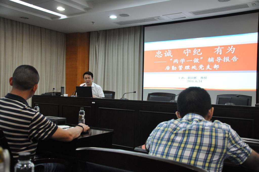 董同彬教授首先从为什么开展“两学一做”学习教育讲起,通过回顾党的历史,结合时事政治、社会热点问题以及鲜活的事例,深入浅出地为我们讲授“学”与“用”、“学”与“做”的辩证关系。董同彬教授通过图文并茂的生动讲解,让在座党员干部深刻体会到开展“两学一做”的重要性和严肃性。并要求党员必须结合自身的工作实际,坚定理想信念,将“两学一做”教育融于日常的服务保障工作中,学以致用,知行合一,做“四讲四有”合格党员。