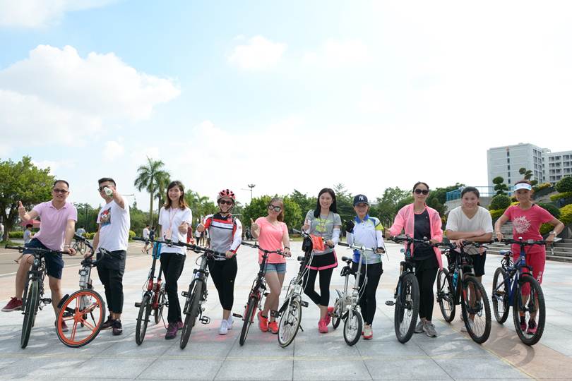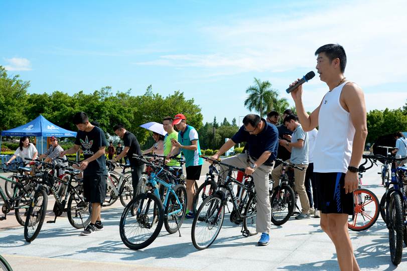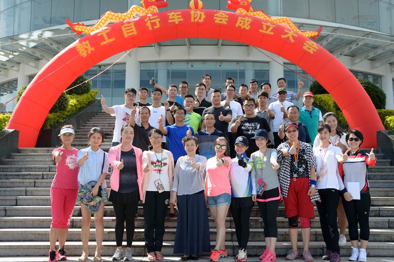 7月11日下午,太阳官网教职工自行车协会在梁銶琚礼堂前举行成立仪式暨首届“环行顺职”骑行活动。学校工会副主席余绍霞、工会工作人员以及教工自行车协会40余会员出席此次活动。