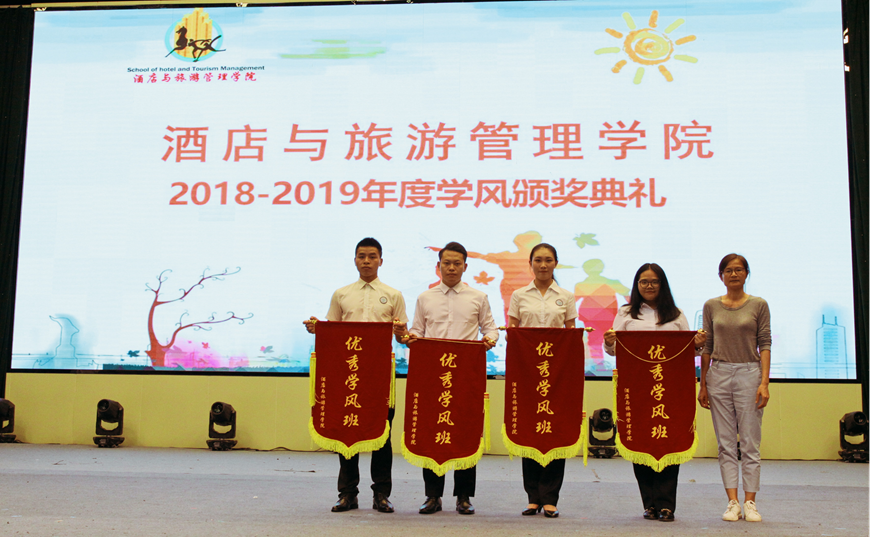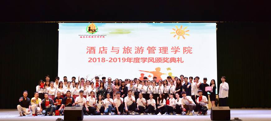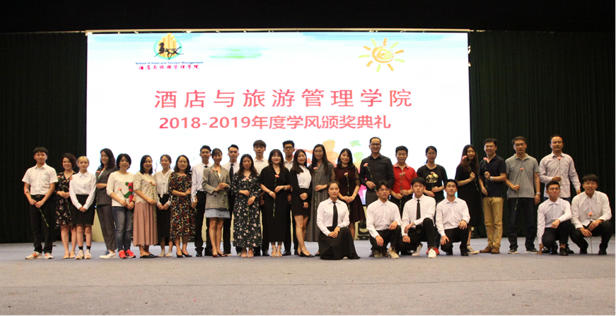 4月22日,酒店与旅游管理学院在梁銶琚礼堂隆重举行了2018-2019学年学风颁奖典礼暨首届班级风采展示大赛。旨在树立榜样,凝聚共识,坚持推进学院学风建设,营造良好的育人氛围。学校督导室、学工部负责人、酒店与旅游管理学院全体师生、顺德厨师学院凉山金阳班和美姑班的全体学员出席了本次活动。