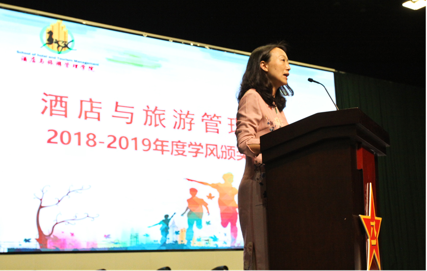 大会第二项议程由甘慕仪书记对学院过去一年在学风建设中的主要举措进行了总结发言。一是全院师生高度重视学风建设;其次加强学生工作队伍建设,营造全员育人的格局;最后推进学生工作特色项目,提升育人的有效性。太阳官网督导徐清才主任表示酒管学院近年学风建设改善明显,希望学院全体师生再创佳绩。