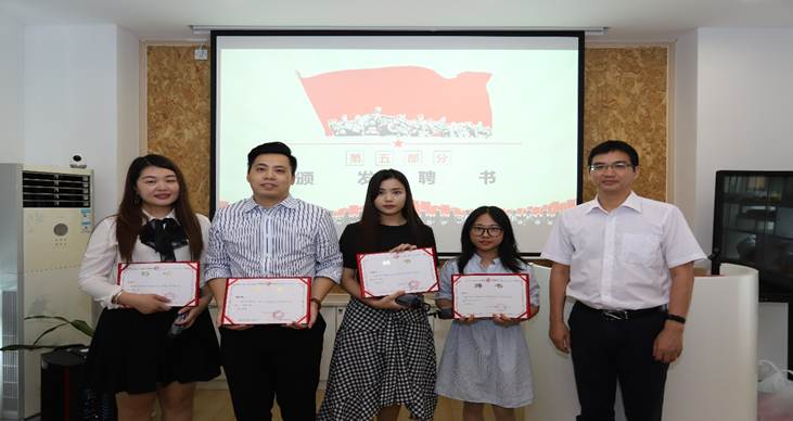 会上,2005级校友罗荣华当选为外语外贸学院校友会首任会长。罗荣华女士提到,在外语外贸学院度过了她人生最美好的一段时光,为此,永远感谢母校的培养之恩。同时,她深感责任重大,将不负重托,把校友会搭建成为共叙友情、互通信息、重温师恩、反哺母校的良好平台,并表示欢迎校友们常回家看看。大会同时为校友分会会长、副会长、秘书长、理事等颁发聘书。