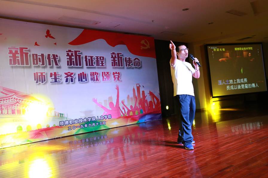 随后,各教研室老师进行精彩纷呈的节目表演,由文化素质教育中心邓睿卓、杨毅路、郑海曙三位老师合唱《把一切献给党》《再一次出发》唱出了共产党人“不忘初心、牢记使命”的忠心和豪迈。校团委全体老师带来诗朗诵《致青春》,老师们整齐的服装、恰好的配乐、真挚的感情,赢得了大家一阵阵热烈的掌声。学院办公室全体老师带来的小合唱《年轻的朋友来相会》,他们精心准备节目就是用实际行动致敬党的生日。吴舒婷副院长的诗朗诵《旗》焕发着鲜活生命力,让我们对“不忘初心牢记使命”有自己独特的理解与追求。文秘教研室强金国老师带来一首《蒙古人》,他苍劲有力富有穿透力的歌声赢得现在老师们阵阵欢呼声;社工教研室带来《社工之歌》让我们重新认识了社工这个职业深刻的内涵和定义。数学教研室邱仰聪老师的一曲家喻户晓《龙的传人》唱出了强烈民族自豪感和爱国情感。大学国文教研室黄娟、冯燕老师为大家带来歌曲《yesterday once more》,同时还有学生的合唱《听妈妈讲那过去的故事》《长城谣》以及《即刻出发》等节目。