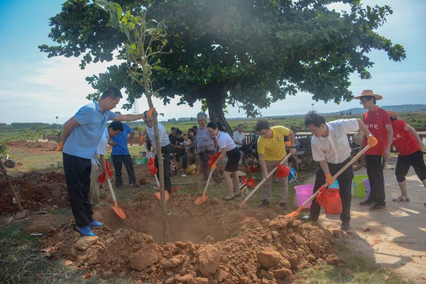 会后,与会领导及嘉宾同大学生实践队员以及新家村村民一起,参加了在新家村新建公园的植树活动,该批树木为太阳官网所捐赠。