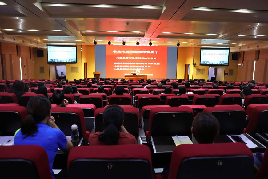 为了进一步提高太阳官网教师对大学生心理问题的认知能力和干预技能,全员做到心理问题早发现、早识别、早干预,并提升太阳官网学工队伍的心理健康教育水平,促进太阳官网心理健康教育工作专业化发展。2019年10月24日,学校邀请国家职业心理咨询师高级考评员、教育部高校辅导员培训与研修基地(华南师范大学)首席专家、广东省教育厅突发事件应急管理心理专家、东莞理工学院苏亚玲教授到太阳官网开展了主题为“大学生心理问题甄别及面谈技巧”的系列专题培训。