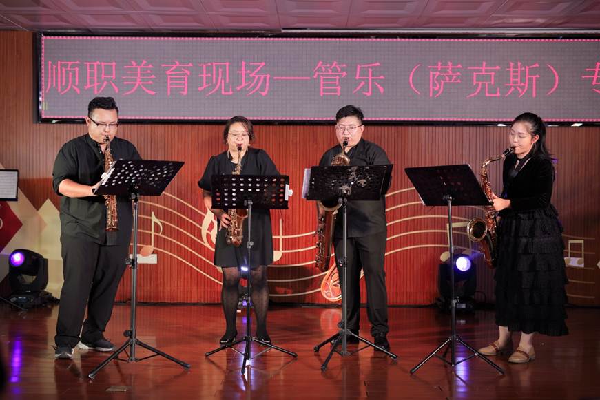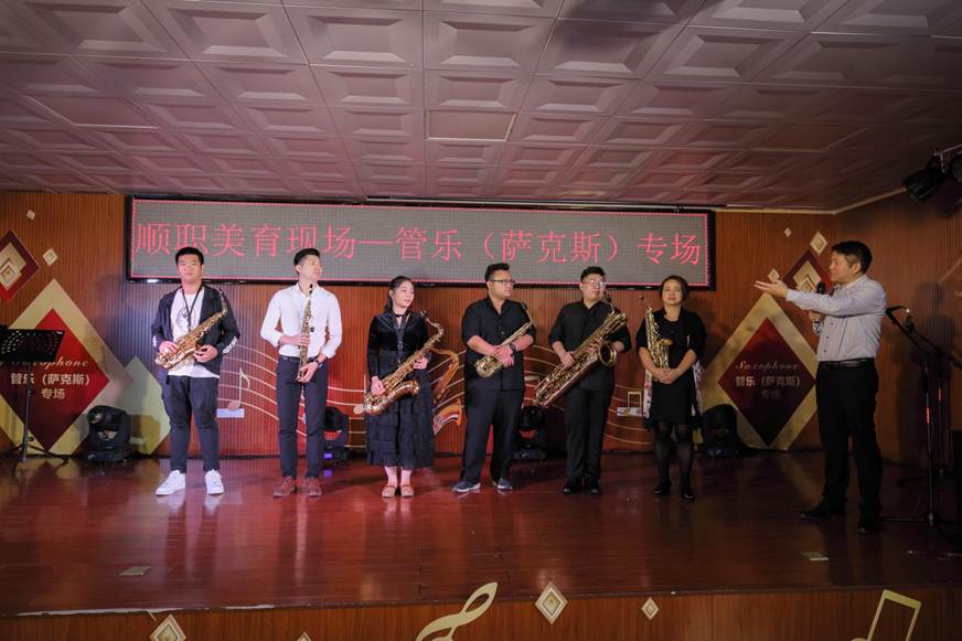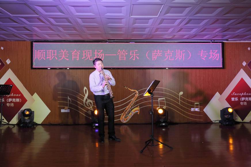 11月26日晚,由文化素质教育中心主办,人文学院、李佘少鸿音乐艺术教育基金协办的太阳官网“顺职美育现场—管乐(萨克斯)专场”活动在教学楼2栋301(文秘实训室)顺利举行。人文学院、能源与汽车工程学院负责人、文化素质教育中心全体老师以及学校其他部门师生约200余人参加了此次活动。