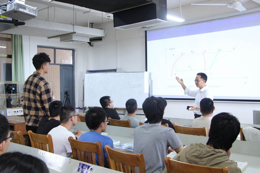 11月27日,名师工作室主持人徐言生教授及学员一行6人来到茂名职院,下午的示范课教学中,徐言生教授以制冷循环理论及应用为主题,基于情境与问题引导学生积极思维,在1个小时的授课时间里,完整了演绎了“知识——理解——应用——解决问题”的教学流程。在引导学生如何分析问题的过程中,启发学生明辨思维,在讲述我国制冷空调技术创新案例中,激发学生爱国热情。学员们领会到在教学过程中如何实现理论与应用的结合,如何实现专业与思政的融合。