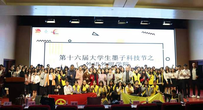 12月11日下午,由校团委主办,外语外贸学院团委承办的2019年墨子科技节之第十一届影视配音大赛总决赛在六号学术报告厅隆重举行。校团委、外语外贸学院相关负责人,各教研室教师,班主任,及400余名学生代表参与了本次活动。