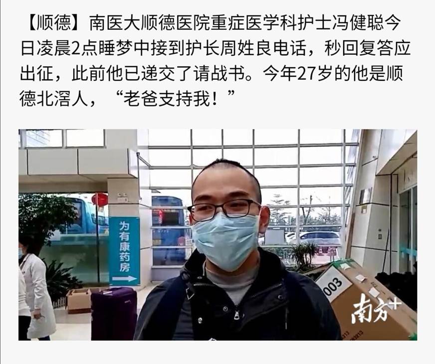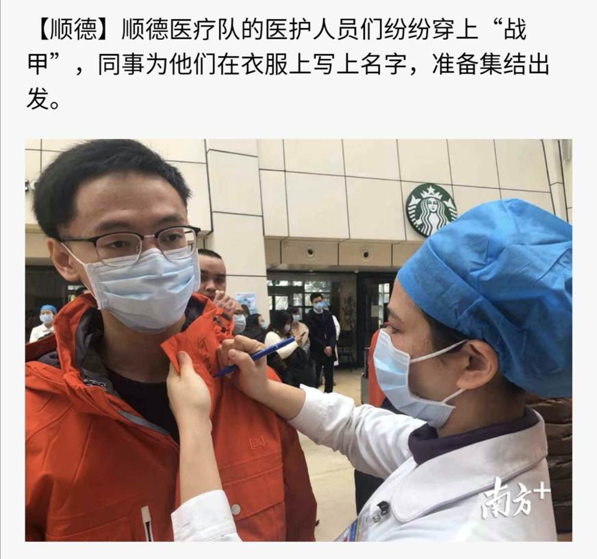 在南方医科大学顺德医院、广州中医药大学顺德医院、广东省同江医院、佛山市中医院支援湖北、南海区第四人民医院医疗队伍里,医药卫生学院往届护理专业毕业生:卫校毕业生胡惠玲;06级何军、罗丽仪;10级李倚坪、刘晓炯;11级冯健聪、朱倩雯、欧阳艳玲、欧阳月弟;15级赖泳锋、朱锡麟;16级何子星、林家仪、张靖雅;梁富源;赖泳锋积极响应号召,整装待发。出发前,女医护人员纷纷剪断飘飘长发,全体人员穿上“战甲”,写上名字,他们将不忘初心,不辱使命,不负人民,勇挑重担,战胜疫情,平安归来。