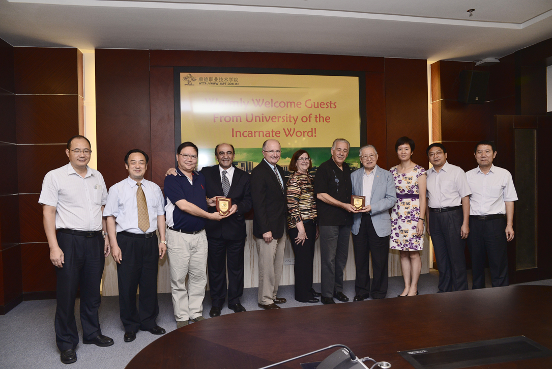 10月23日至24日,美国圣道大学(University of the incarnate word)校长Louis Agnese,护理学院院长Mary Hoke,验光学院院长Tim Wingert,美国华南商会会长Harley Seyedin一行来访太阳官网进行交流及合作洽谈。顺德区教育局局长闵乐萍、太阳官网校董孙志恒、名誉院长陈智、党委副书记齐振彪、副院长陈粟宋,太阳官网党办校办、党委宣传部、国际交流与合作处、医药卫生学院、设计学院的负责人以及相关老师参加了会议。