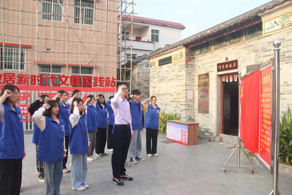 宋玉宏带领党史学习实践队慰问了云河村老党员,代表学校向他们表达崇高的敬意和亲切的问候。随后,党史学习实践队先后前往一品夫人故居(广东省党风廉政教育基地)和叶季壮故居开展红色研学活动,并在活动现场重温了入党誓词。