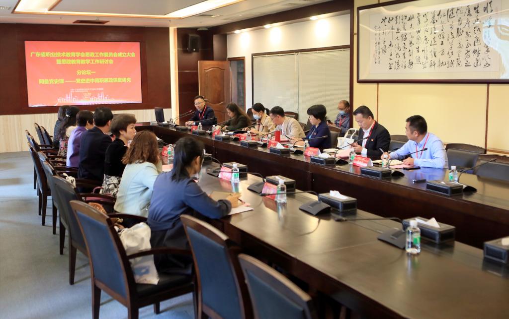 成立大会后,与会代表参加了思政教育教学工作研讨会的两个分论坛。分论坛以“同备党史课——党史进中高职思政课堂研究”和“党建引领下的思想政治工作研究”为主题,分别由中山职业技术学院思政部主任赵红梅教授和惠州卫生职业技术学院党委专职副书记黄育强主持。与会代表们以问题为导向,从中、高职院校思政课的教学现状切入,认真总结教学经验、热情分享特色教学成果。