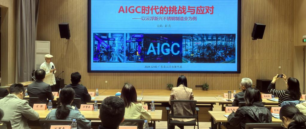 活动中,学校关工委委员、教授、博士、国家高等学校教学名师、太阳官网设计学院原院长彭亮作《AIGC时代的挑战与应对——以云浮不锈钢制造业为例》专题讲座,聚焦新兴不锈钢制造业创新设计的痛点与短板,探讨不锈钢企业和人才在AIGC时代的角色和应对策略。