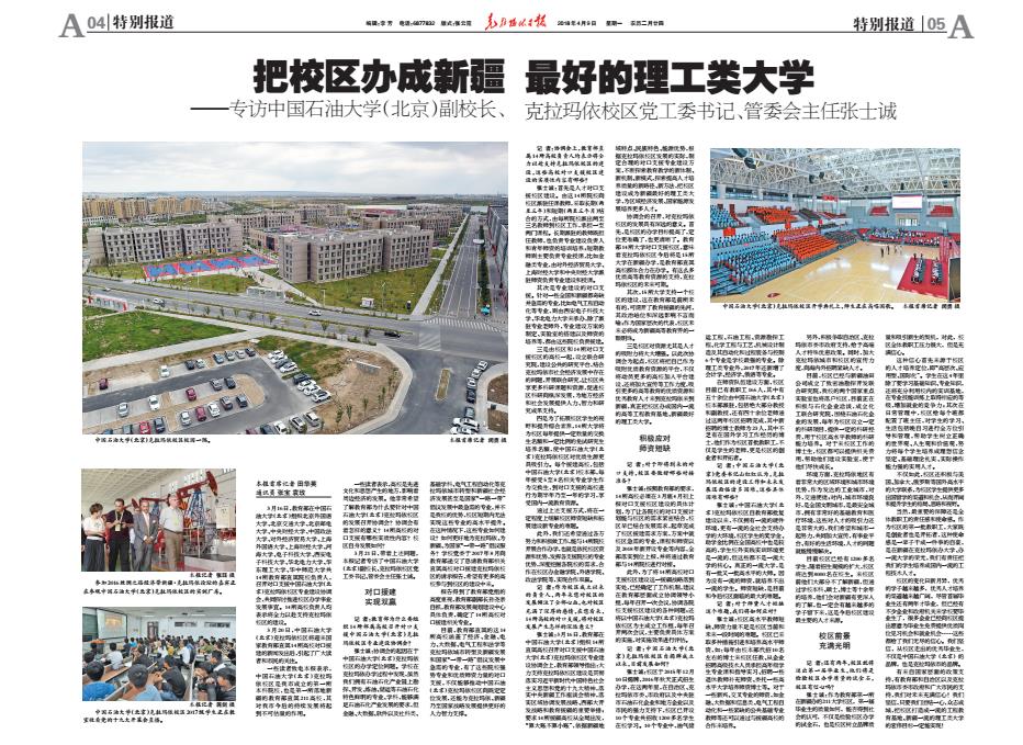 克拉玛依日报就14所部属高校对口支援石大克拉玛依校区专访石大副校长张士诚