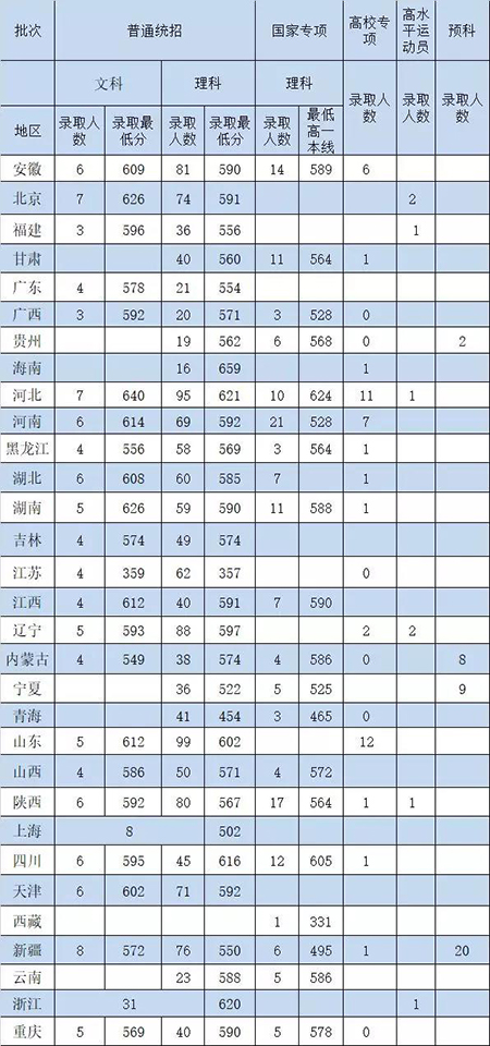 截至2018年7月25日,除西藏外,beat365在线唯一官网(北京)各省普通统招已完成,在各省市和地区的本科一批、国家专项、高校专项等项目的录取分数线已公布,初步统计结果显示,所有省份文理科最低分和平均分高于一本线值均高于2017年,理科录取最低分名次比2017年平均提高7%左右,人民网对此进行了报道,新浪网等媒体进行了转载。