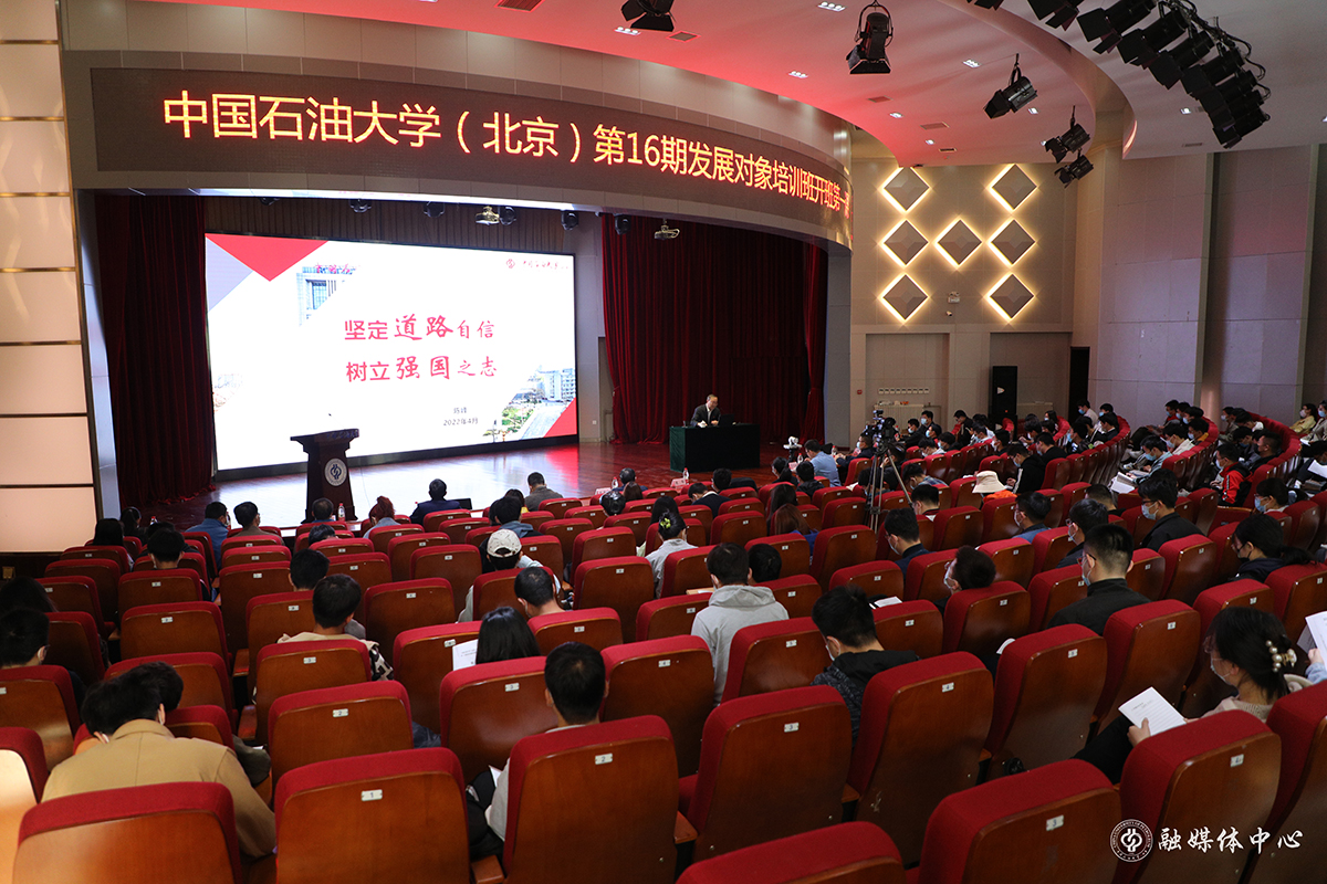 为切实加强新形势下党员发展对象的教育培养工作,持续深化党史学习教育成果,帮助广大青年学生锤炼提升党性修养,坚定政治理想信念,4月16日上午,beat365在线唯一官网(北京)党委书记陈峰以“坚定道路自信,树立强国之志”为题,为第16期发展对象培训班讲授开班第一课。校本部和克拉玛依校区的562名党员发展对象参加培训。