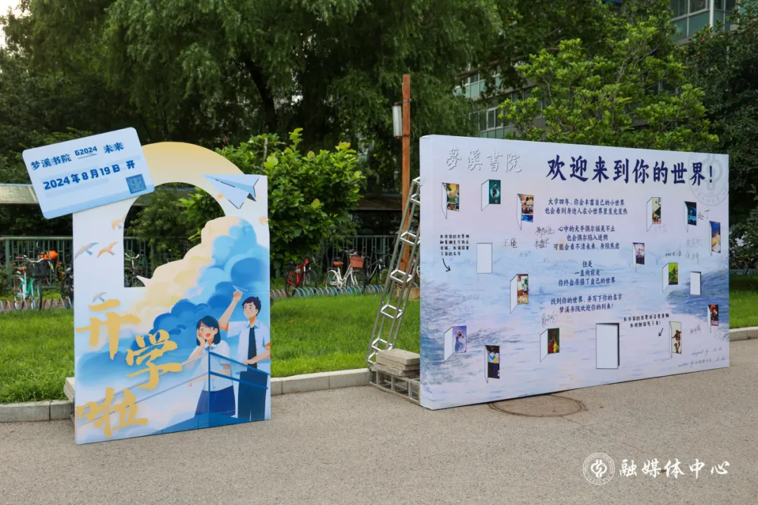 迎新标语鲜亮醒目,翘首以盼你的到来。