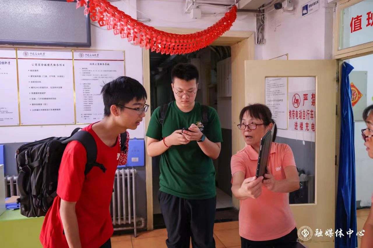 在地球科学学院迎新点,新生辅导员杨耀东向金衍介绍了学院前置化迎新流程、合理化分配班级和宿舍,以及学业导师进宿舍等创新管理模式。地球科学学院构建了由辅导员(年级)-班主任(班级)-学业导师(宿舍)构成的三级育人格局,为2024级新生班精心选配6名班主任,金衍担任3班的班主任。资源勘查工程专业的2024级新生刘庭昊正在办理报到手续,了解到刘庭昊的班级专业后,金衍笑着说:“我是你的班主任。” 刘庭昊告诉金衍:“我来自辽河油田,父亲在油田企业工作,身边有中石大的优秀毕业生,让我对学校、专业充满了期待。能源是工业的粮食、国民经济的命脉,有着不可替代的重要作用,我要努力学习,端牢能源的饭碗。”金衍勉励他尽快适应新环境,学好知识,为以后发展打好基础。