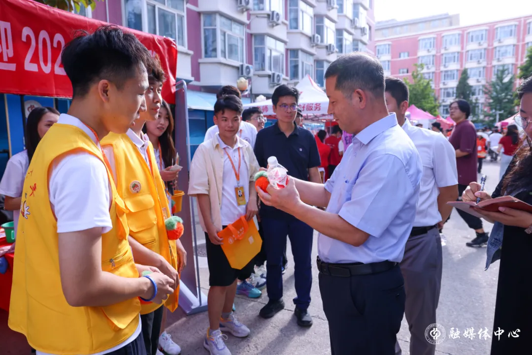 学校党委书记王同奇、校长金衍、党委副书记文永红等到学校润杰公寓、北校园迎新点,迎接看望2024级新生。