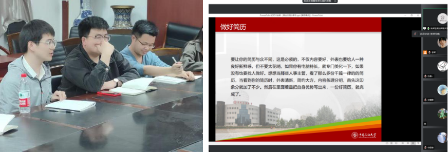党支部坚持党建引领,注重党建与业务深度融合,除了开展理论知识学习之外,积极举办科研主题讲座、就业和毕业主题讲座等。讲座中,2021级博士生范旭阳分享了自己在科研过程中遇到的问题以及解决办法,呼吁各位同学“不唯书,只唯实”,注重实践、强化实践。2019级硕士研究生靳汶梦结合自己的求职经历为大家解疑答惑,指导学弟学妹们做好个人求职规划。