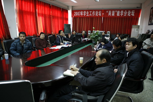 12月15日,2007年学生工作论坛思想政治理论课(以下简称“两课”)教学分论坛在人文社科部会议室成功举行。该论坛由人文社科部主办,论坛主题是“总结经验,剖析问题,探讨对策”。人文社科部领导班子的全体成员和全体“两课”任课教师出席了此次论坛。