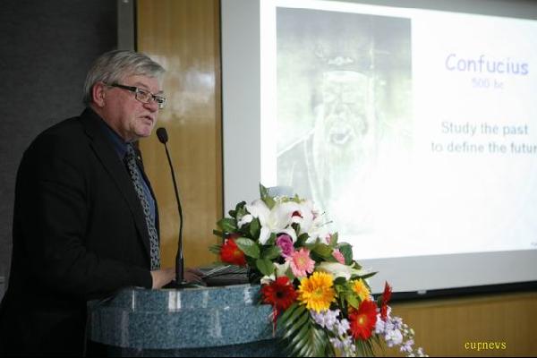 蒋庆哲书记在致词中说,目前世界许多国家和组织都对石油峰值开展了研究,国内的一些研究机构和我们学校的老师也对石油峰值研究作了大量工作。这次会议邀请了不少国内外研究石油峰值的专家,他希望大家能深入的交流和探讨。学校也将对石油峰值研究给予更多的关注和支持。