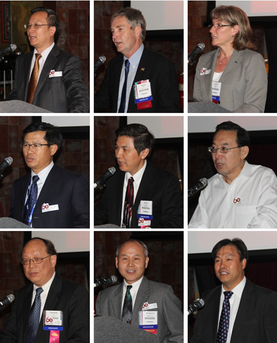美国华人石油协会主席、校友尚柱成先生代表美国华人石油协会,中国海外石油校友会主席杨贺民先生代表中国海外石油校友会分别对石大60周年校庆表示衷心的祝贺。校友、TGS公司高级副总裁李志明先生,校友、美国康菲石油公司采集研发主管朱宪怀先生,校友、潜能恒信董事长、赞助商周锦明先生分别作为校友代表发言,表达了对母校浓浓的感恩之心,并衷心祝福母校明天更美好。