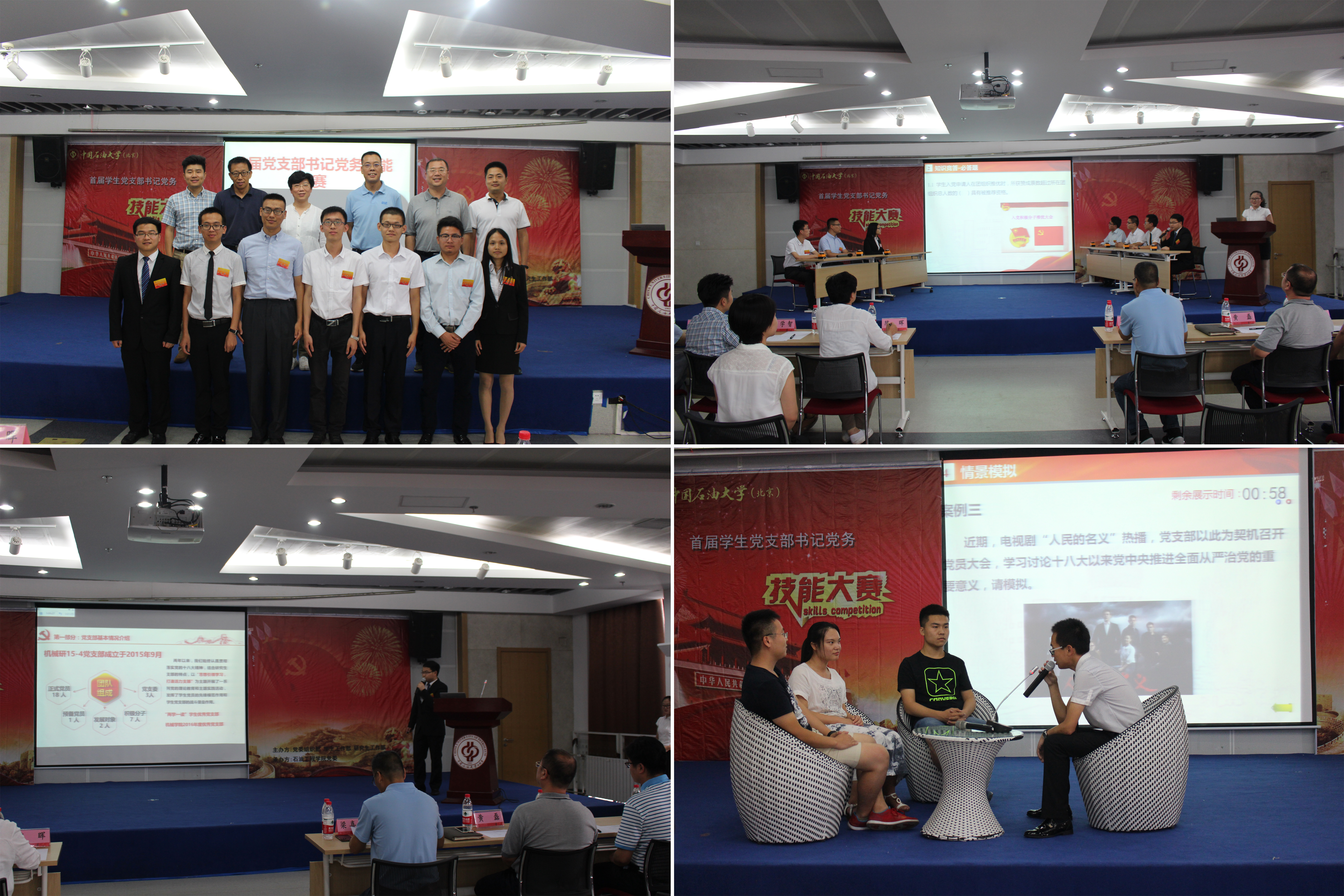 6月28日下午,beat365在线唯一官网(北京)首届学生党支部书记党务技能大赛决赛在学生活动中心410会议室举行。组织部部长梁喜书、副部长陈晖、学生工作处副处长黄磊及各学院党委副书记出席活动。大赛由党委组织部、学生工作处主办,石油工程学院党委承办。