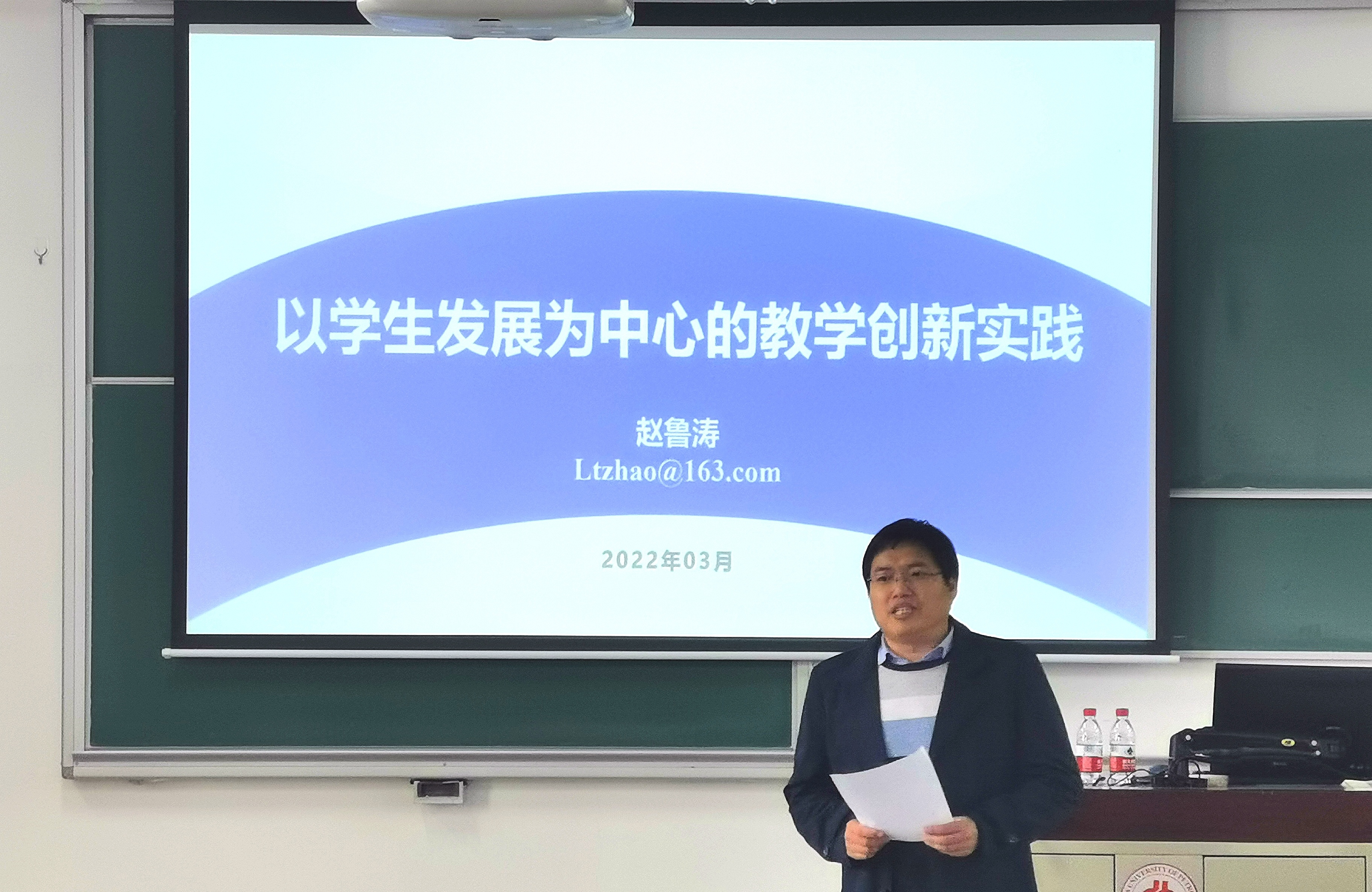 赵鲁涛教授报告主题为《以学生发展为中心的教学创新实践》。在以学生发展为中心的教学理念下,从教学内容、教学手段、教学模式、教学评价四个维度,重点介绍信息赋能的“全链路”创新实践和改革成效。他总结教育教学创新的关键是要夯实教学基础、注重教学积累、融合信息技术、凝聚课程团队,分享了“以赛促教提升教学水平,以研促教优化教学能力,信息赋能助力教学创新,传承匠心凝聚智慧,政策支撑保障教学”的参赛感受,并且如何准备课堂教学实录、创新成果报告、现场汇报等给出了具体建议。