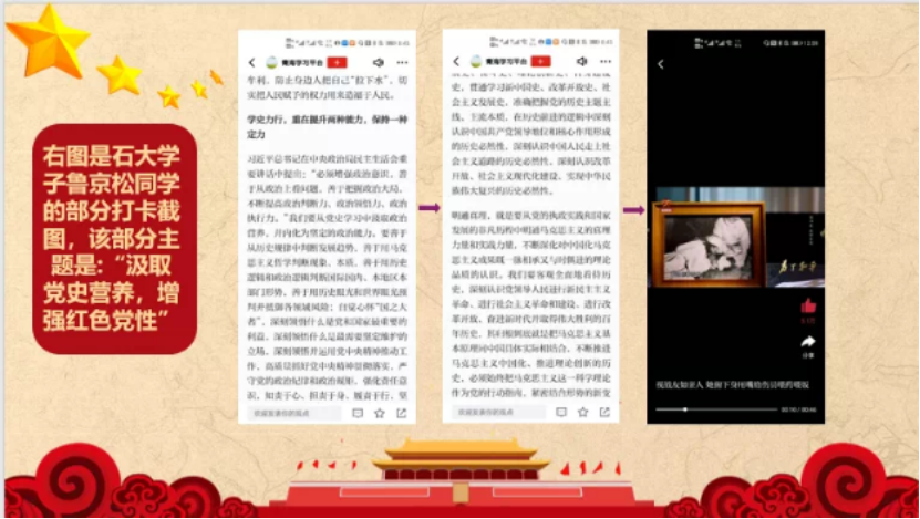 本次活动共发布石大新闻1篇、两院新闻2篇、原创推文5篇、石大校团委公众号转载1次、推送阅读总量达2000余次,先后被今日头条、极目新闻报道,受到两校两院老师及同学的一致好评。通过开展学党史、悟思想、强信仰的主题共建,提高了同学们对党史学习的兴趣,增进了两校两院的紧密联系,深化了青年学子的爱党情怀,为党的100周年华诞献上真挚的祝福。