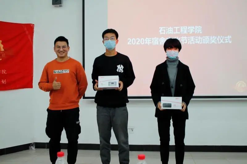 辅导员张久达、曹洋涛、王心贺为2020年 “与石俱进,随遇而安”宿舍文化节的获奖宿舍颁奖。该活动共设一等奖1个,二等奖2个,三等奖3个共六个奖项。