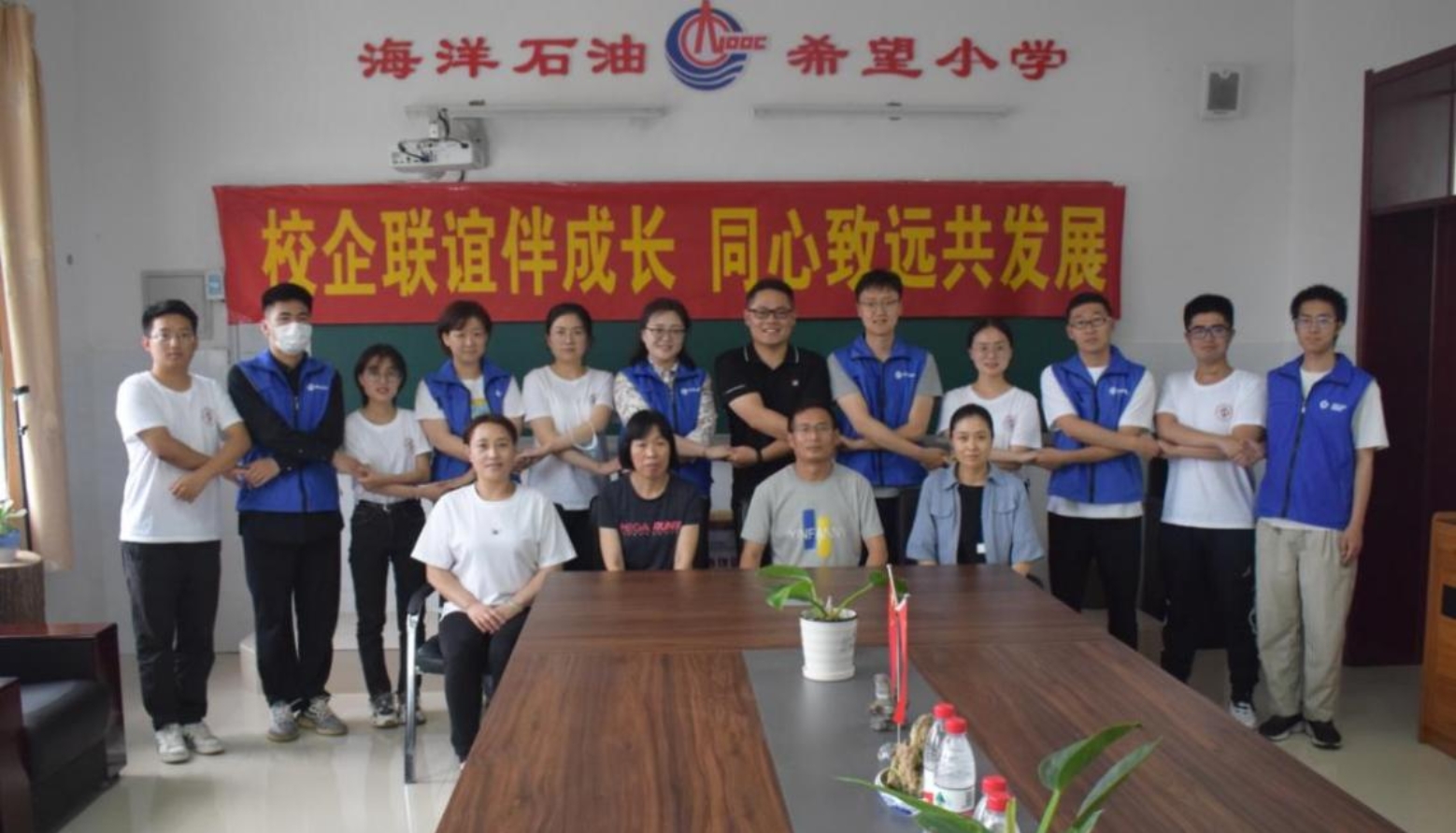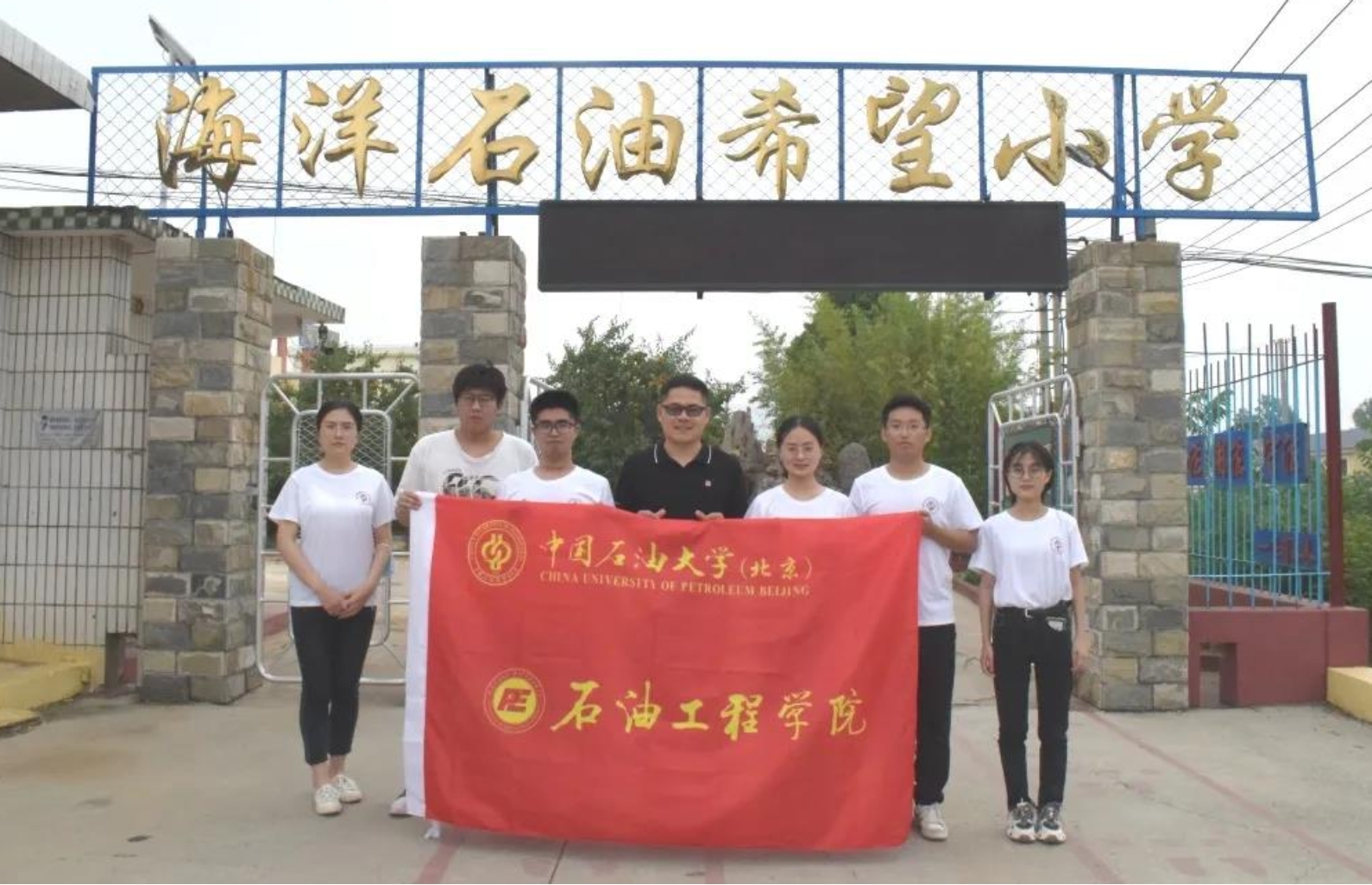 6月2日,学院组织研开发19-2党支部6名学生党员代表前往河北训口海洋石油希望小学开展“校企牵手共绘美好 童心向党助力振兴”社会实践活动,石油工程学院团委书记刘东东带队指导。中海油服公司物探事业部团委书记轩倩茹与8名各单位志愿者共同参与本次活动,希望小学校长对实践队伍进行了热情周到地接待。