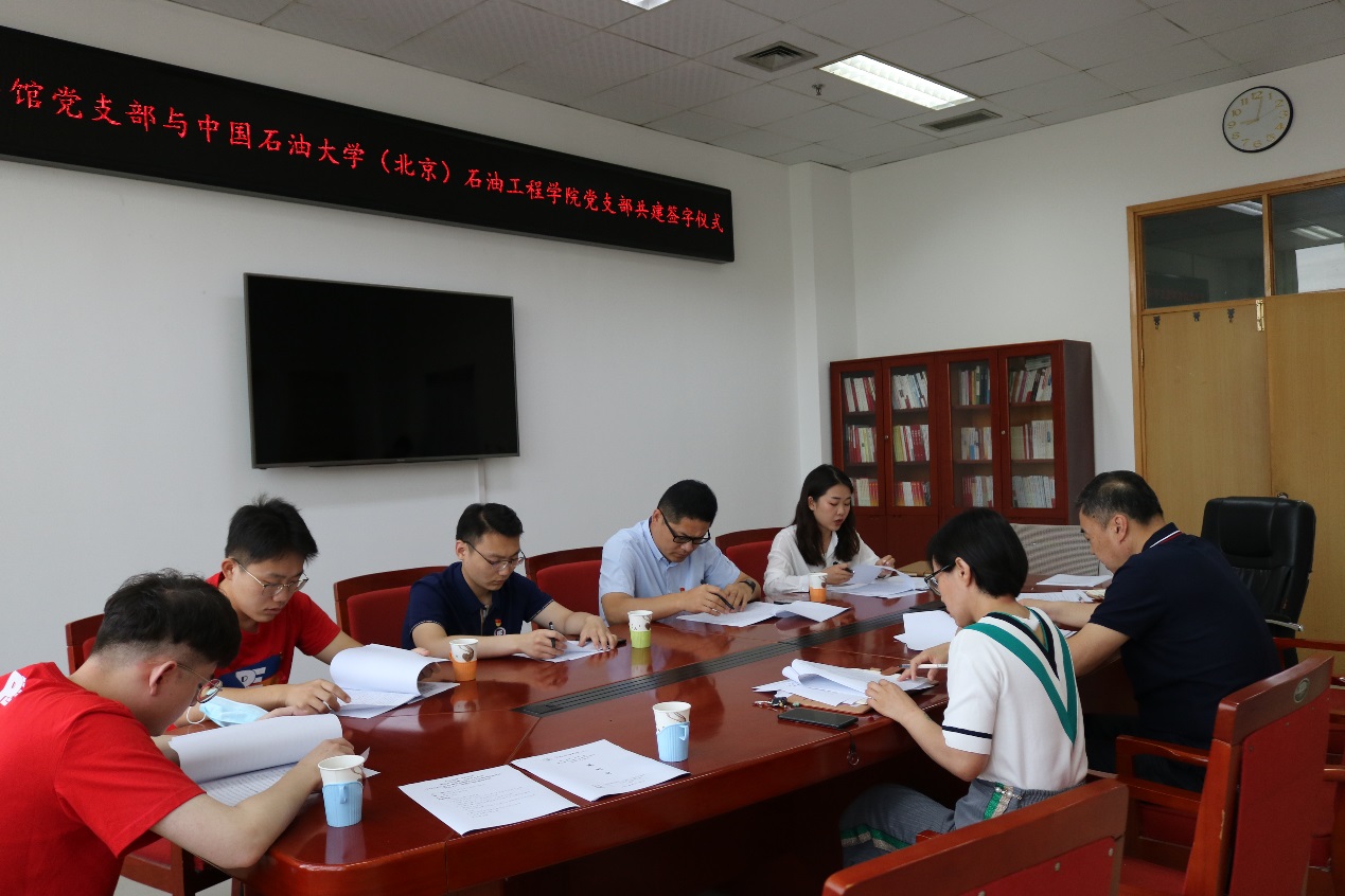 7月2日上午,“红心向党,书香作伴,重走百年之旅,坚定文化自信”石工本19级党支部联合昌平区图书馆党支部“红色1+1”共建活动启动会在昌平区图书馆召开,昌平区图书馆馆长、党支部书记王海川,昌平区图书馆副馆长、党支部副书记张桂梅,昌平区图书馆办公室主任孟晓庆,石油工程学院团委书记刘东东、青年志愿者协会指导教师李杰、石工本19级党支部书记史凯及部分党员代表参加会议。
