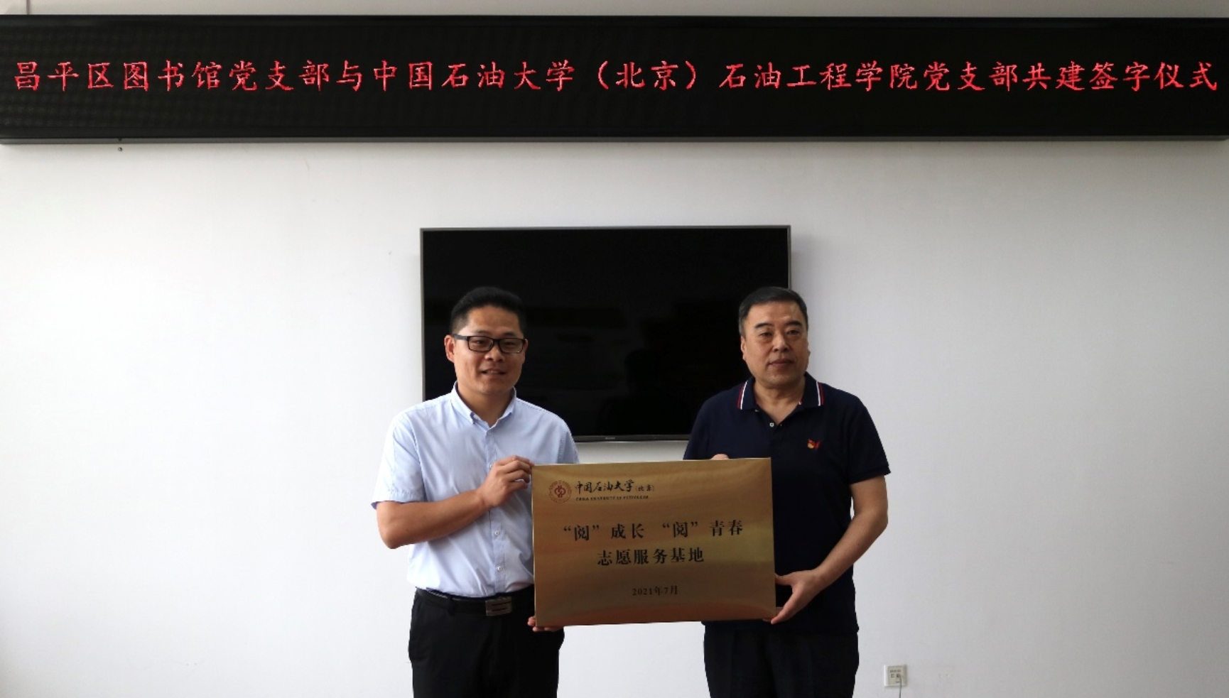随后,双方在达成共识的基础上完成了支部共建协议签署和志愿服务基地挂牌仪式,昌平区图书馆正式成为beat365在线唯一官网(北京)石油工程学院“‘阅’成长,‘阅’青春”志愿服务基地。