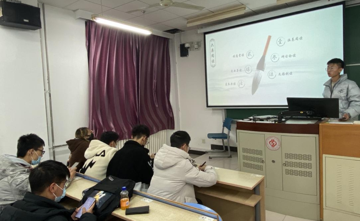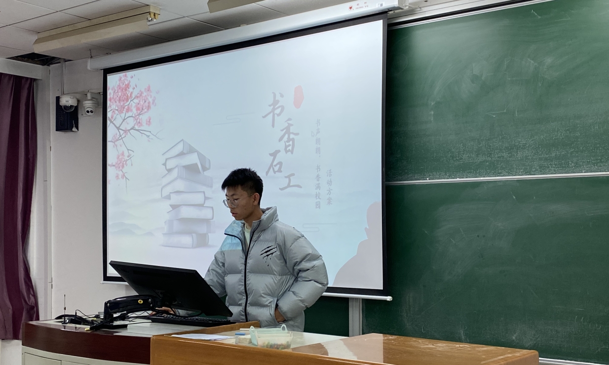 主持人介绍此次活动的背景与目标,并向同学们展示“书香石工”活动的往年成果。而后,主持人重点讲述活动安排:由“研讨交流”、“读书分享”、“六类阅读”、“量化考核”四个方面组成。
