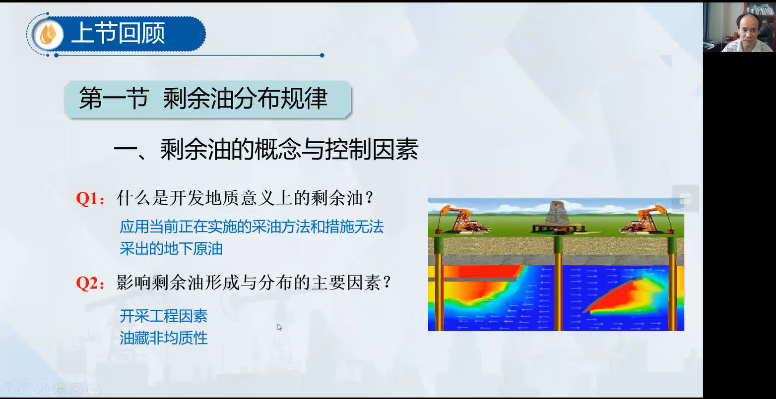 会议第二阶段为示范课讲授。吴胜和教授以油矿地质学课程“第八章 油气藏开发地质中的动态地质分析”中的“层间剩余油”为主题,从知识点导入、问题链解析、师生互动、信息工具使用、课程思政融入等方面对课堂教学元素进行了展示,讲授了一堂生动的示范课。