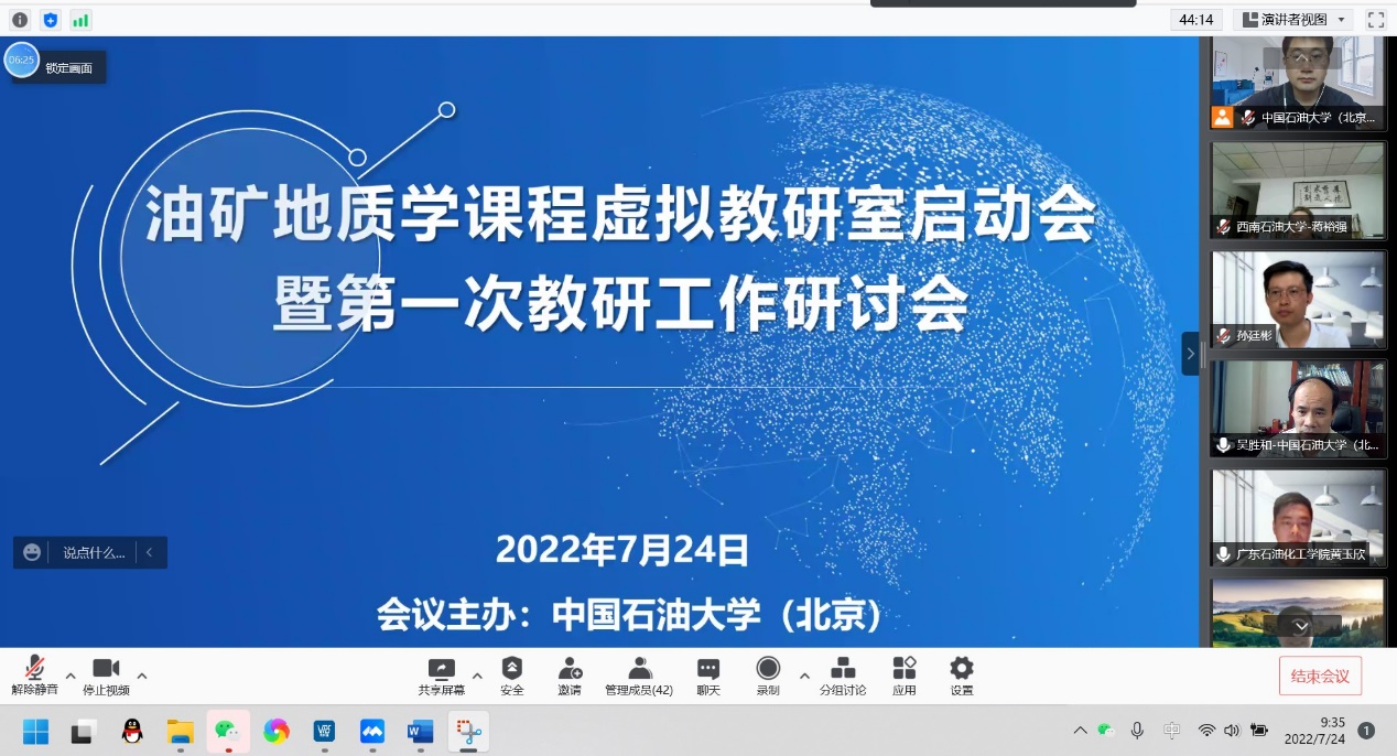 为贯彻落实教育部《关于加快推进虚拟教研室试点建设工作的通知》的工作要求,发挥虚拟教研室在加强教学研究、推进教学改革、交流教学经验、促进协同发展、资源共建共享等方面的积极作用,2022年7月24日,油矿地质学课程虚拟教研室召开了启动会暨第一次教研活动。参会单位有beat365在线唯一官网(北京)、beat365在线唯一官网(华东)、西南石油大学、长江大学、东北石油大学、西安石油大学、吉林大学、中国地质大学(北京)、西北大学、成都理工大学、延安大学、重庆科技学院、广东石油化工学院13所国内高校和大港油田、石油工业出版社,共计45位参会代表。会议为线上方式,油矿地质学课程虚拟教研室负责人吴胜和教授致欢迎词,岳大力教授主持,分三个议程进行。